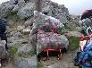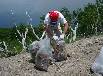 ゴミを背負って急斜面を下山中